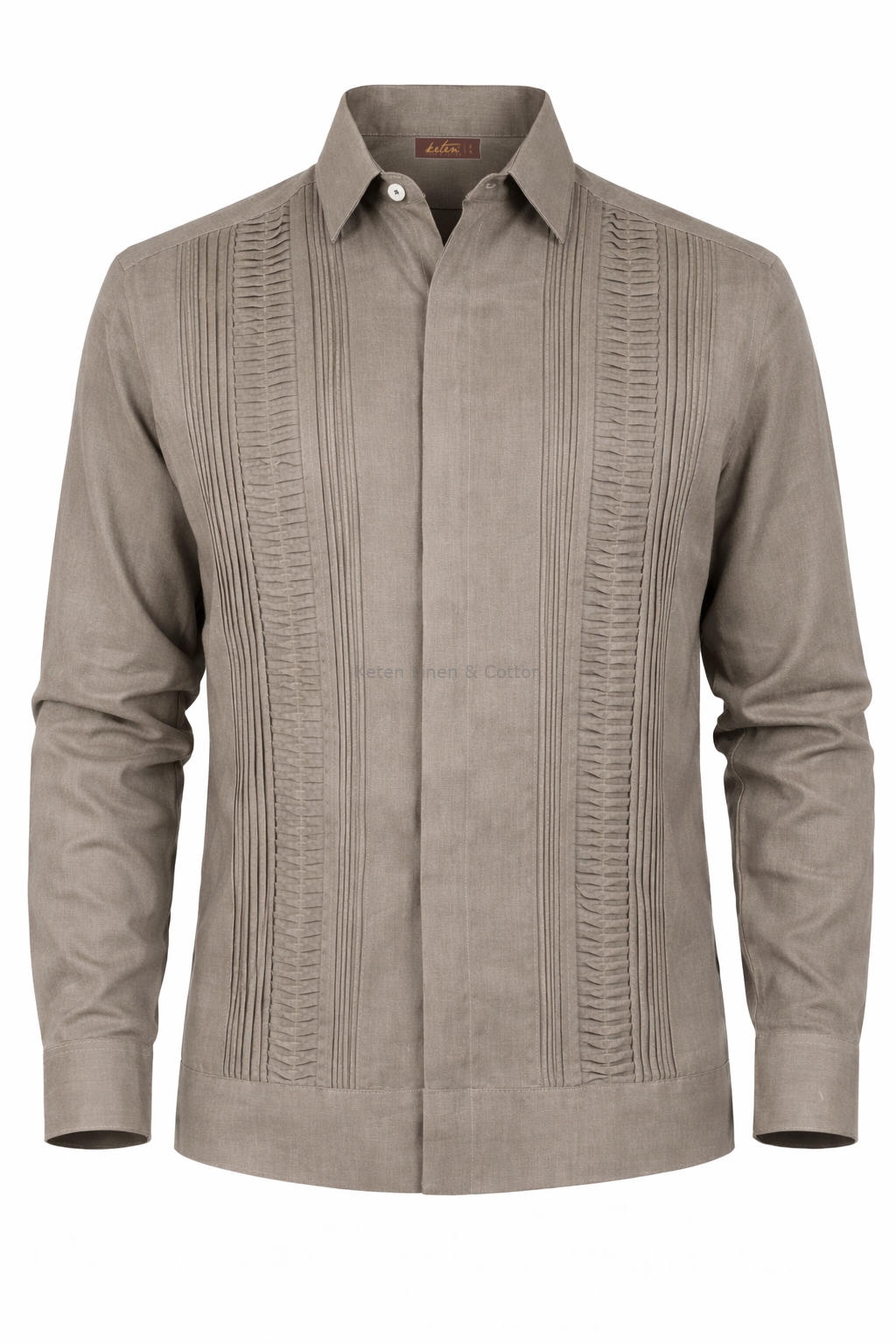 Guayabera para caballero manga larga color gris oscuro. Prenda 100% lino con alforzas en el frente , cuello clásico y cierre de botones ocultos. Guayabera tan versátil y formal para cualquier ocasión.