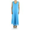 Long Blue Cotton Dress With Crochet a Mano Artesanal